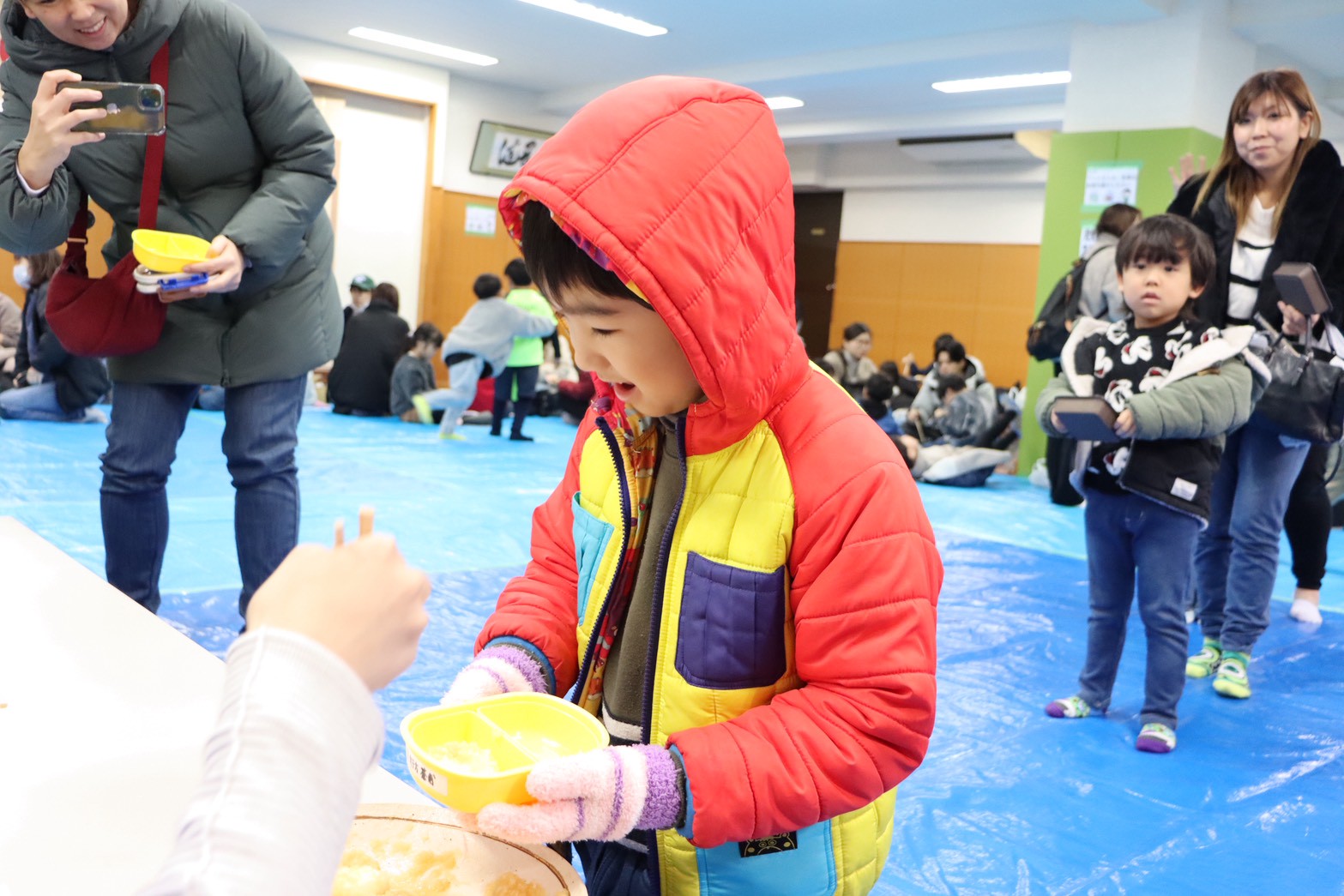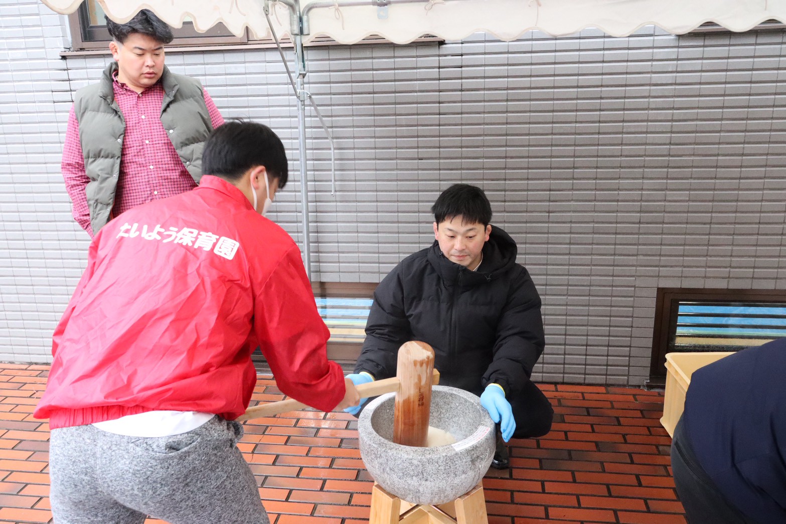 たいよう保育園とNPO法人志陽館の共催で、毎年恒例のお餅つき会を開催しました。 今年は雨が降る中での開催にもかかわらず、保育園の子どもたちや道場の子どもたち、地域の方など多くの人に足を運んでいただき、例年と変わらぬ参加者数だったのではないかと思います。お餅も開始から1時間ほどで無くなってしまうほどの盛況ぶりでした。